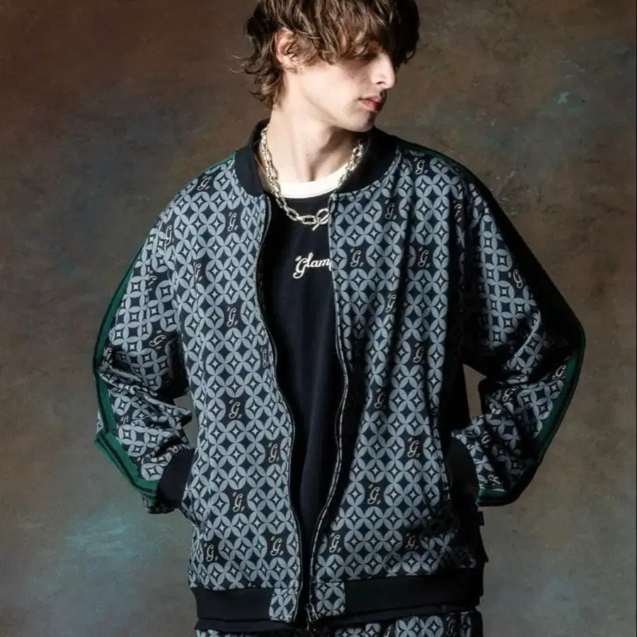 기하학 패턴의 그레이와 블랙 집업 자켓, 그린 스트라이프 포함. - 디자인: 기하학 패턴 프린트 - 색상: 그레이와 블랙 배색 - 소재: 폴리에스테르 - 스타일: 집업 자켓 - 소매: 그린 스트라이프 포함 방문해 주셔서 감사합니다. 사이즈 - L