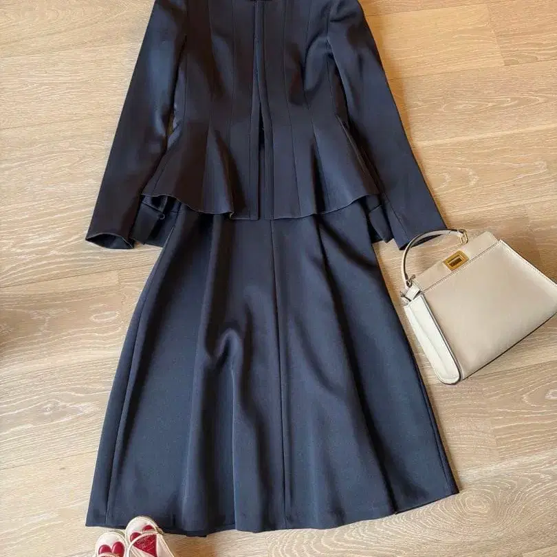아름다운 광택이 있는 네이비 페플럼 스타일 수트, 유치원 입학, 입학 등 포멀한 자리에 최적입니다. 허리 위치가 상당히 높아 보여 스타일업이 가능한 수트입니다. 아나이 제품이지만 띠어리 럭스 느낌도 납니다. 하카타 한큐 백화점 직원분께 추천받아 자켓은 34 원피스는 36 으로 식전에 참여하기 위해 구매했지만 일본 의류로 결정하여 사용할 기회가 없어졌습니다. 원피스에는 가격표가 붙어 있었지만 자켓은 탈부착되어 있었으나 미사용입니다. 참고로 올해 아나이 사이트에서 비슷한 자켓 수트를 올렸는데 거의 같은 형태라고 생각합니다. 세트로 70000만 정도였던 것으로 기억합니다. - 브랜드: ANAYI - 색상: 네이비 - 소재: 폴리에스테르 - 디자인: 페플럼 스타일 - 스타일: 포멀 방문해 주셔서 감사합니다.