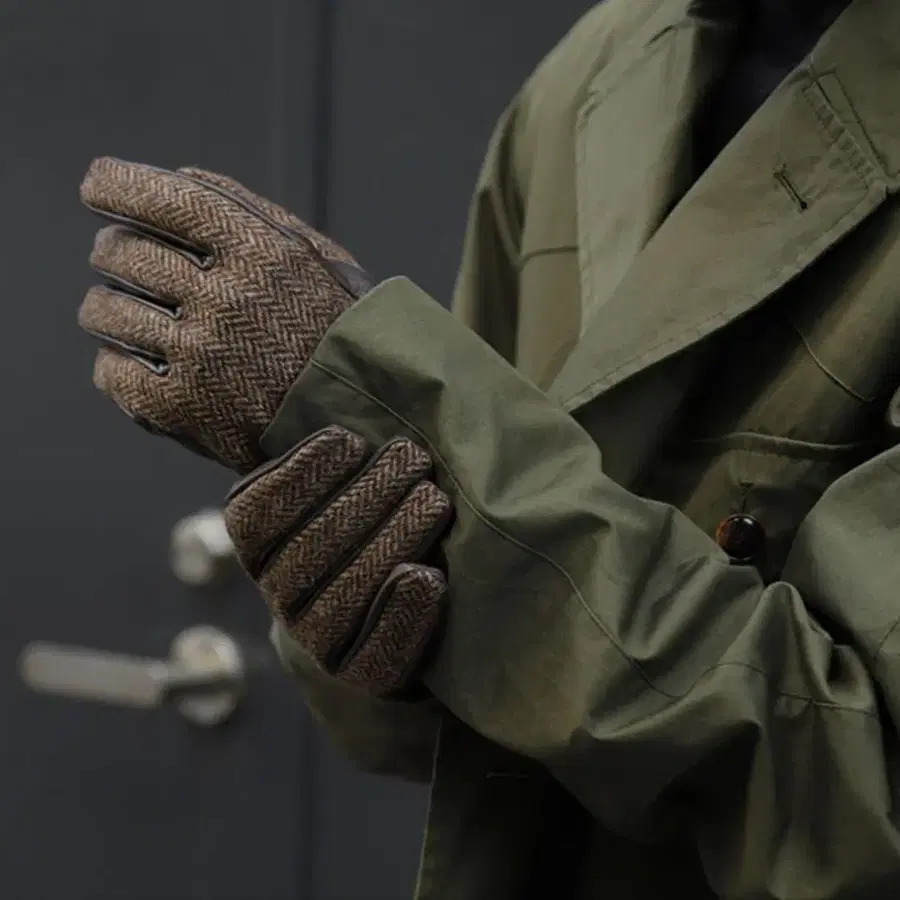 퍼 달린 다크 브라운 장갑