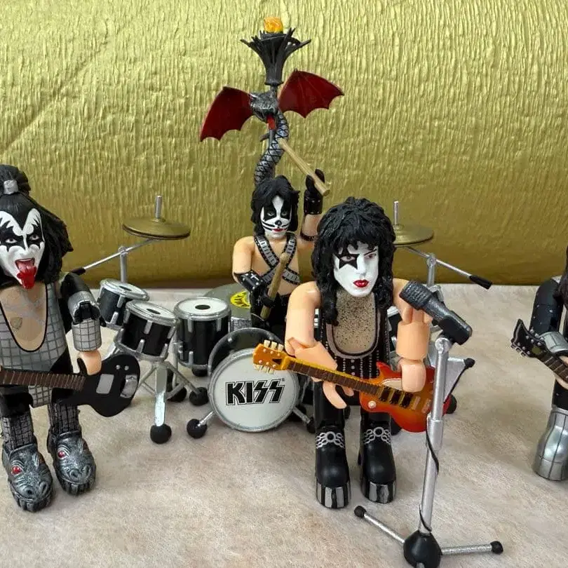새상품급입니다. 더 이상 나오지 않을 것 같습니다. KISS 피규어 세트, 드럼 세트, 기타, 마이크, 기타. KISS 팬에게 양도합니다.