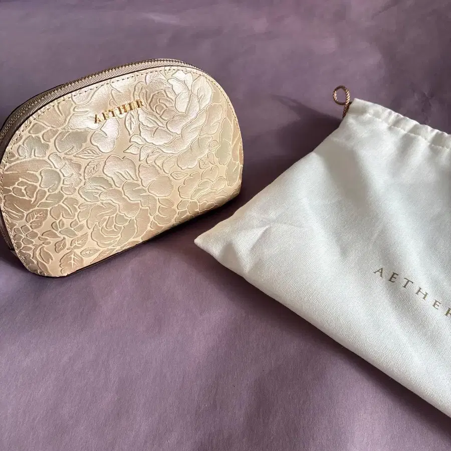 싱크비 꽃무늬 자수 파우치 베이지 그레이