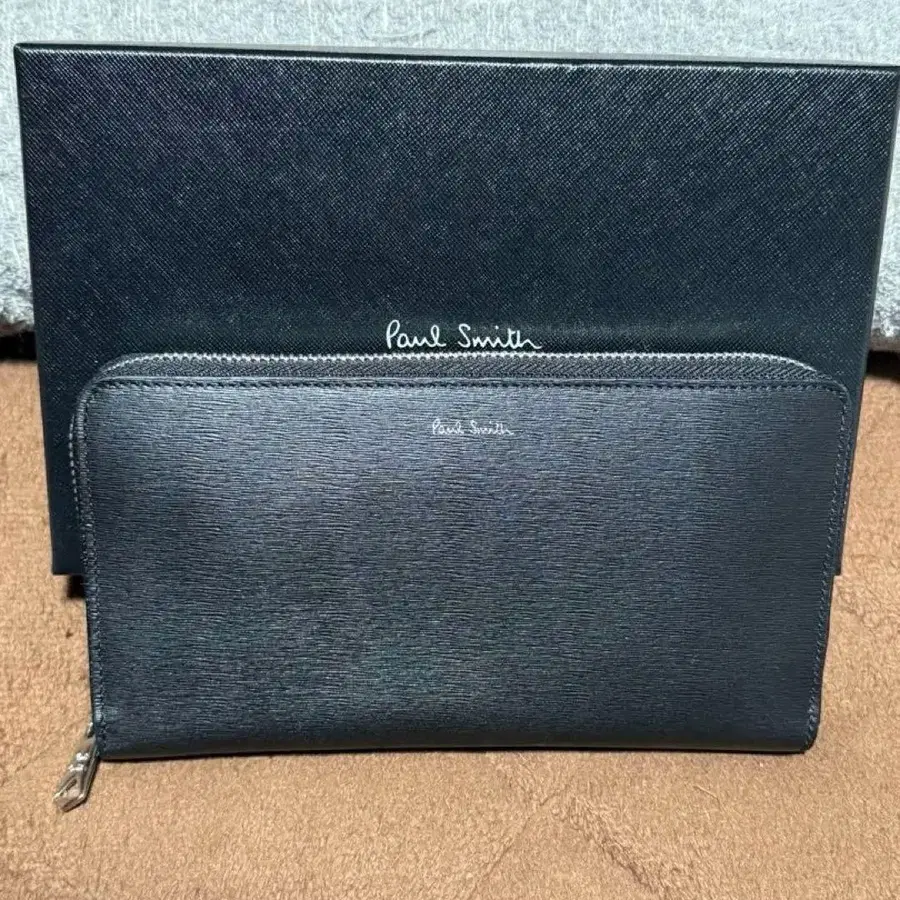 폴 스미스 장지갑 라운드 지퍼 멀티 스트라이프 블랙 레드