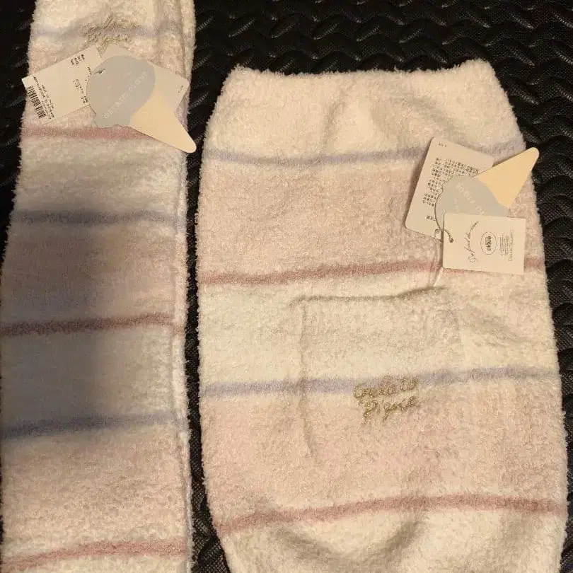 젤라또피케의 삭스와 복대입니다. 둘 다 미사용 새상품입니다. 품번은 각각 PWGG185525, PWGG185526입니다. 빠르게 발송해 드리겠습니다. 검토 부탁드립니다. - 브랜드: GELATO PIQUE - 색상: 화이트/핑크/스트라이프 - 소재: 플리스 - 타입: 삭스 - 특징: 포켓 부착