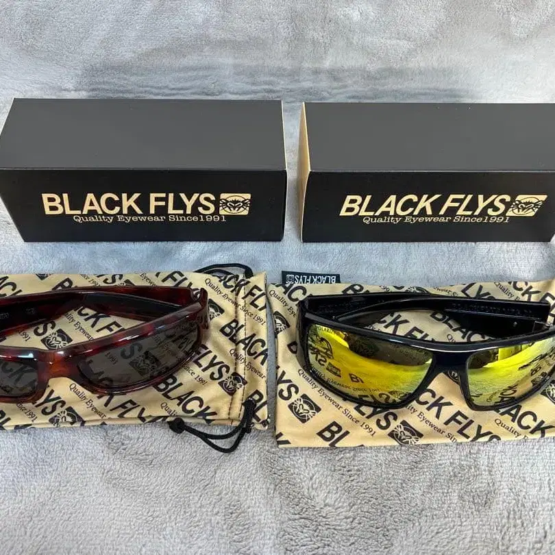 브랜드: BLACKFLYS 2개 세트 왼쪽 색상: 브라운 렌즈: 스모크 그레이 모델: FLY BOBY 부속물: 파우치 설명: 새상품 구매 후 5회 착용 오른쪽 색상: 블랙 렌즈: 미러 모델: FLY MISSION 부속물: 파우치 설명: 새상품 구매 후 5회 착용