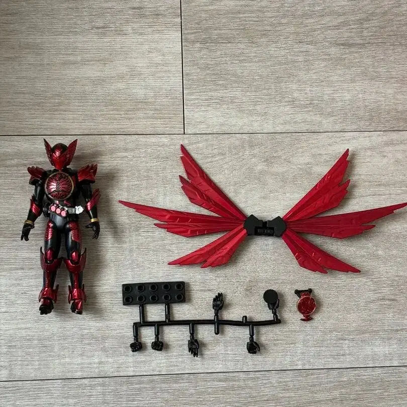 상자 없음, 개봉품입니다. 개봉 시점에 교환용 깃털 부품의 메탈릭 페인팅에 일부 벗겨짐이 있습니다. 본체 상태는 깨끗하다고 생각합니다.