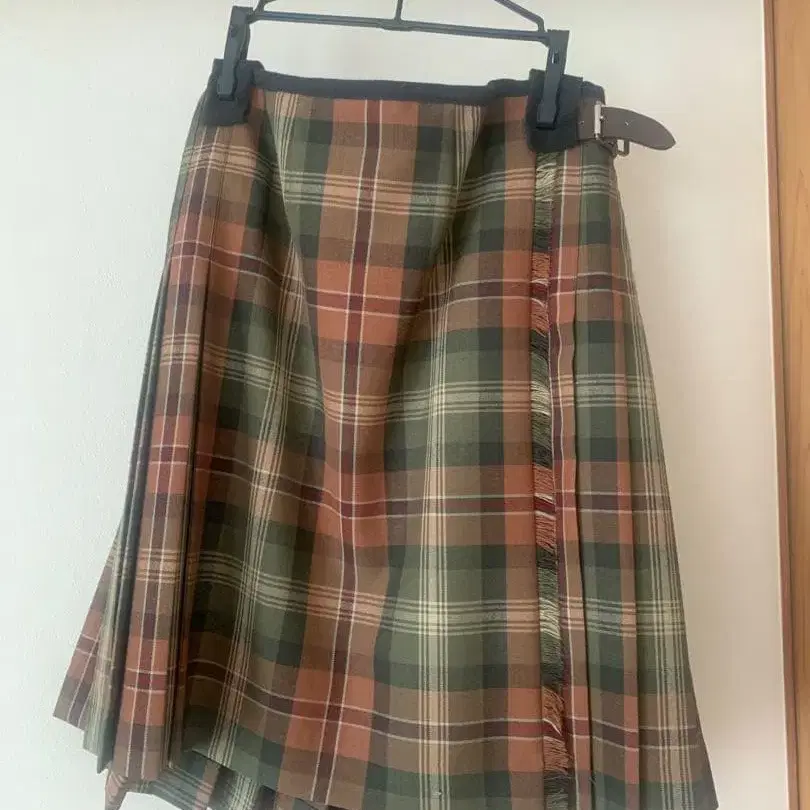 트랜스워크 박스 스커트 벨트 포함 모 95% 체크 안감 무릎 기장