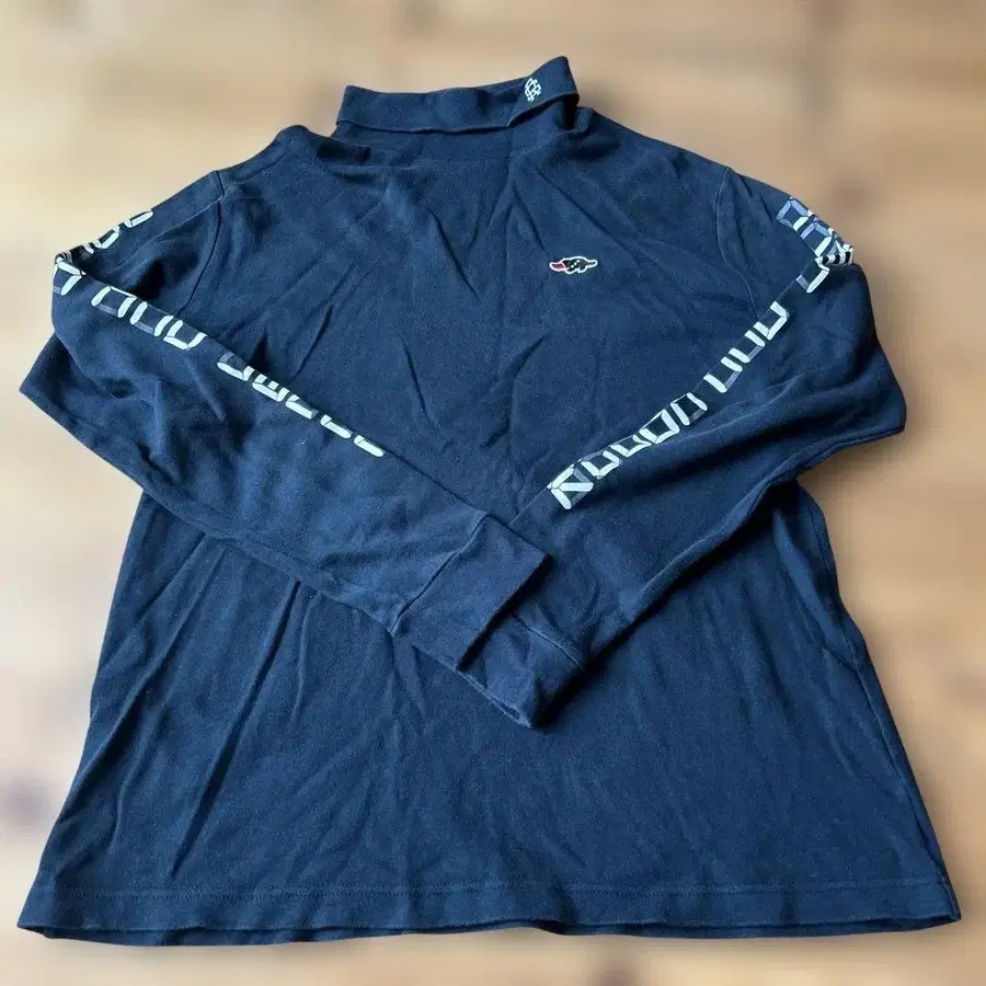 rough &swell 색상: 네이비 개인 측정 기장 65, 가슴 너비 51 정도 터틀넥을 접으면 고로(곰)가 보입니다. 몇 번 사용한 상품으로 약간의 색바램 등 사용감이 있지만 프린트 벗겨짐 없이 아직 착용 가능하다고 생각합니다^_^