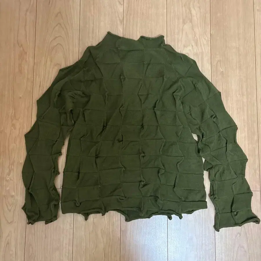 울 100% 올리브 색상 터틀넥 스웨터.
