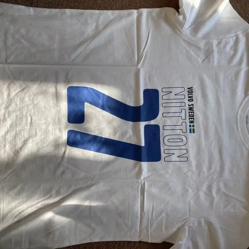 VOLVO의 NITTON 디자인 화이트 T셔츠, 스웨덴 제조 코튼 소재.