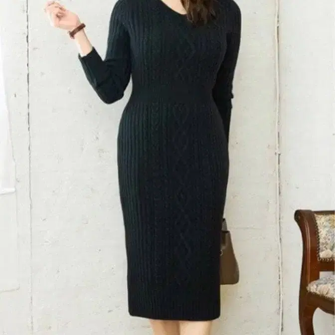 • 케이블 니트 롱 원피스 (아이보리)