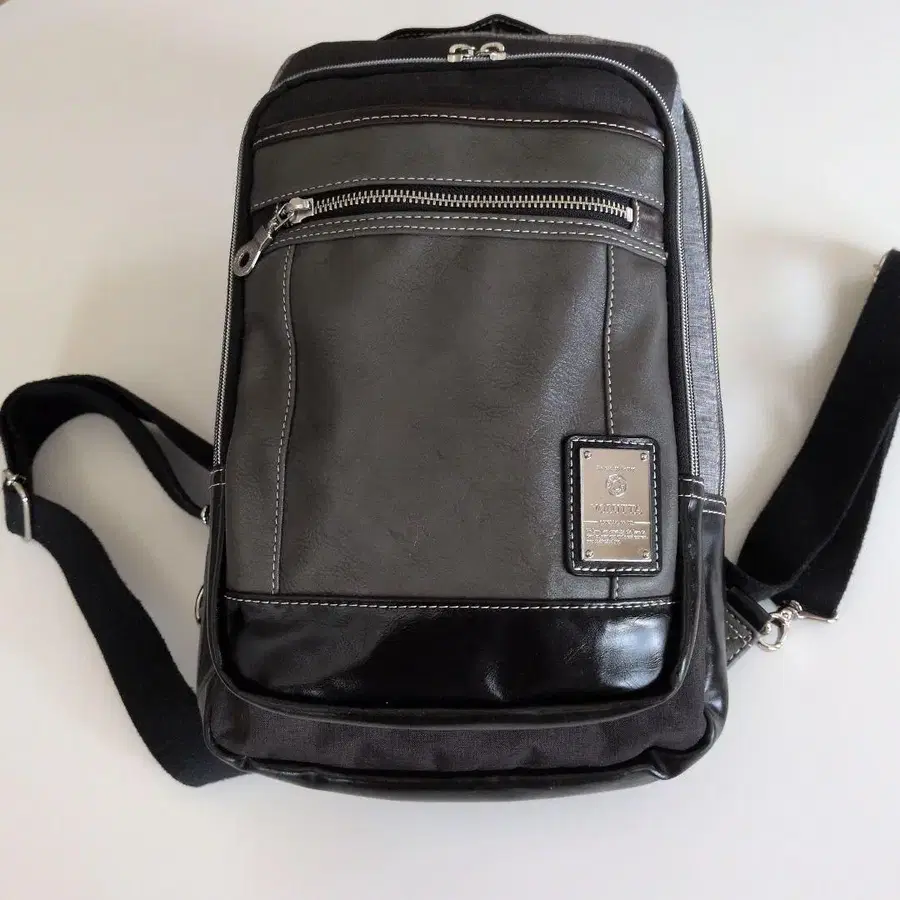 그레이와 블랙 색상의 합성 피혁 숄더백, 슬림하고 휴대하기 좋은 디자인.