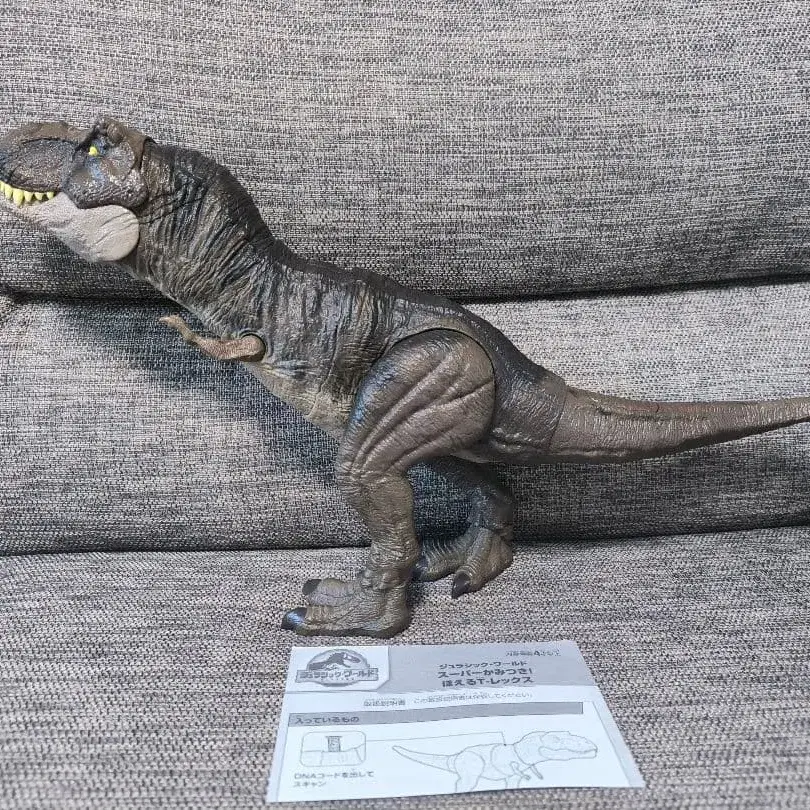 꼬리에 있는 버튼을 누르면 크게 입을 벌리고 짖습니다. 입이 크게 벌어지기 때문에 미니 피규어를 먹는 액션도 가능합니다.