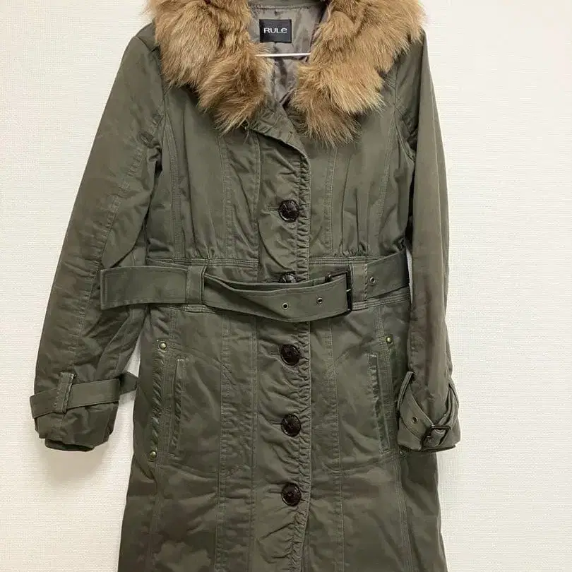 퍼가 달린 올리브색 모즈 코트, 허리 벨트가 있어 스타일리시합니다. - 브랜드: RULE - 색상: 올리브 - 소재: 퍼 포함 - 스타일: 모즈 코트 - 특징: 허리 벨트 포함 방문해 주셔서 감사합니다.