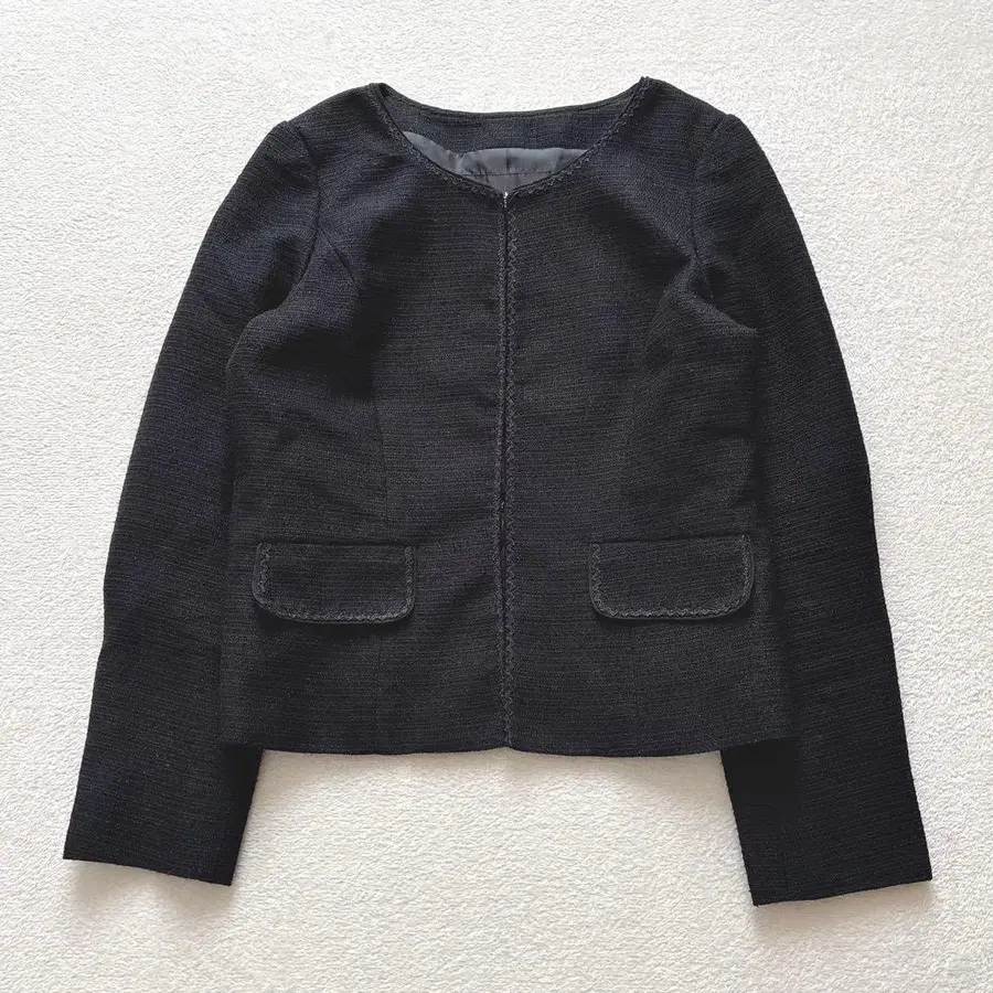 [m.f.editorial ] 노카라 자켓 블랙 트위드풍 L