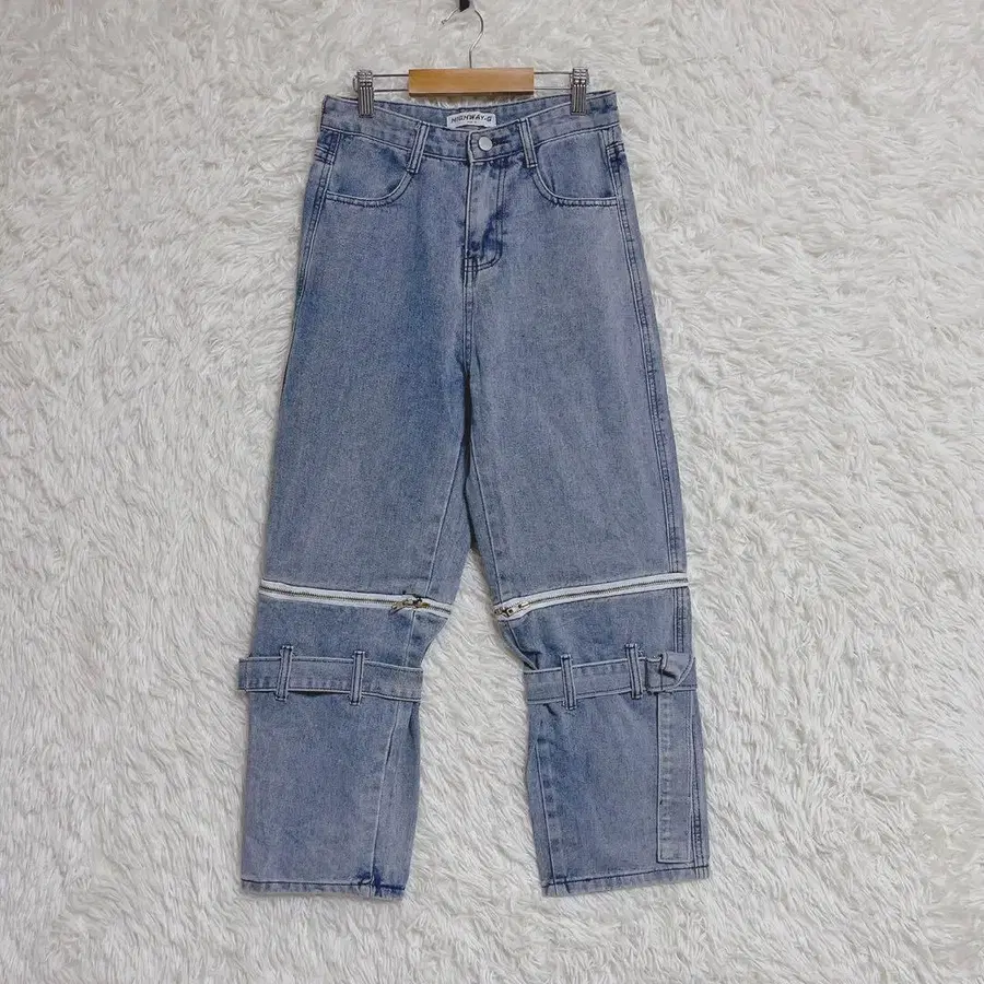 [ HIGHWAY-G ] 데님 팬츠 (S) 무릎 지퍼 벨트 변형 데님