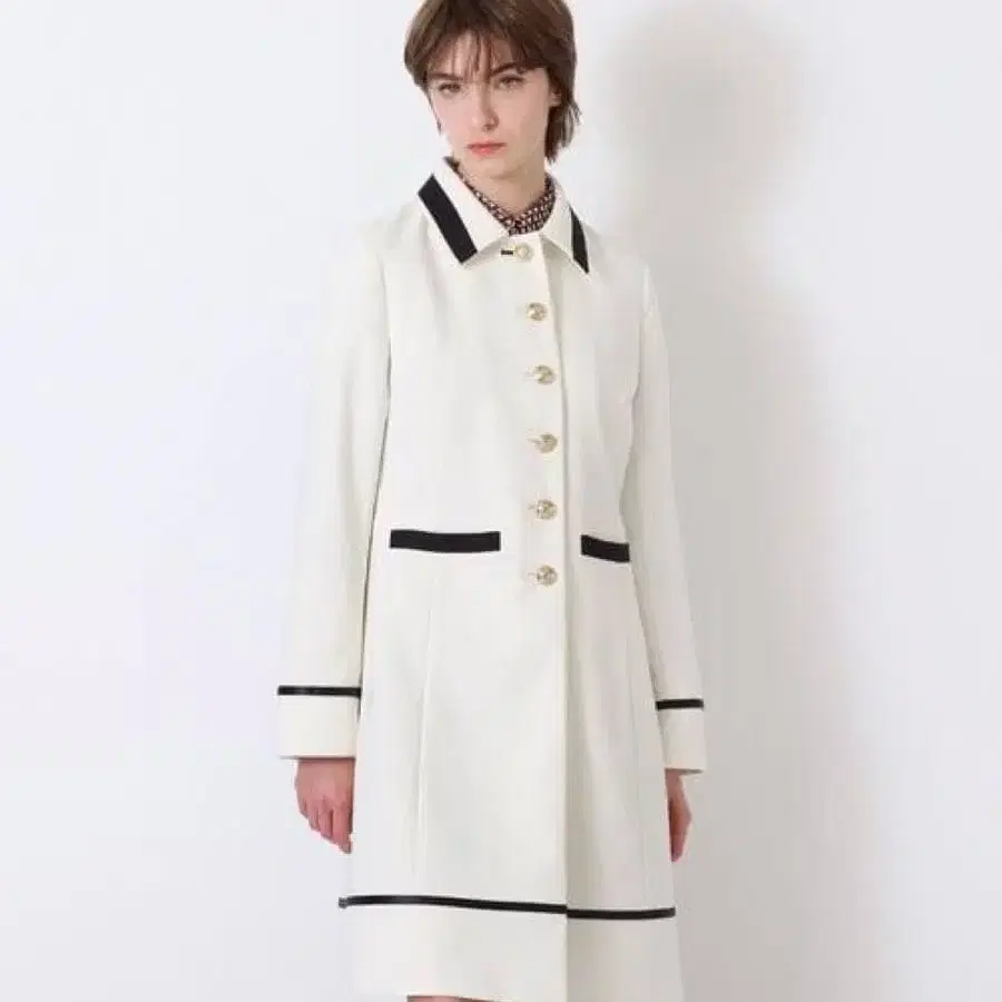 [ 실루엣/디자인 ] 컴팩트한 몸판에, 밑단으로 갈수록 플레어를 준 A라인 실루엣. 적당히 허리를 쉐이프시켜 슬림한 실루엣을 즐기실 수 있습니다. 클래식한 디자인에 네이비 라인을 넣어 마린풍으로 업데이트. 흰금 컬러의 메탈 버튼이 전체를 조여 럭스함을 더해줍니다.