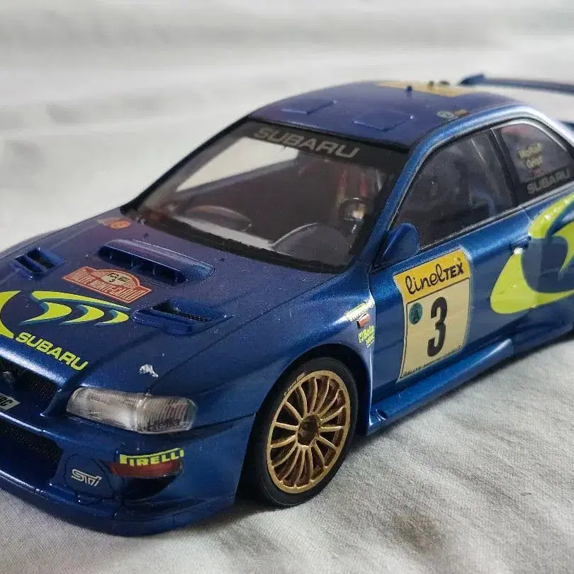 타미야 모형 1/24 프라모델 스바루 임프레자 WRC 입니다. 당시 물건입니다. 어두운 곳에서 보관했습니다. 데칼에 데미지가 있는 부분이 있습니다. 아마추어 제작이므로 이해해주시는 분 부탁드립니다!