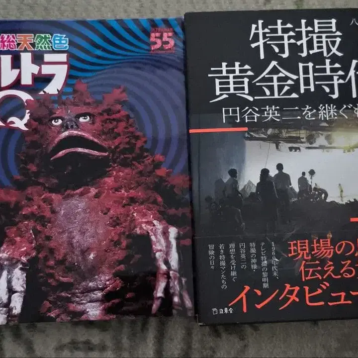 특촬 황금 시대에 관한 귀중한 인터뷰집과 울트라 Q의 상세 내용을 수록한 서적. 2권 - 타이틀: 총천연색 울트라 Q - [ 거의 새 상품, 미품 ] - 타이틀: 특촬 황금 시대 - 내용: 츠부라야 에이지를 잇는 자 - [ 상태도 좋고, 깨끗합니다 ] - 장르: 특촬물
