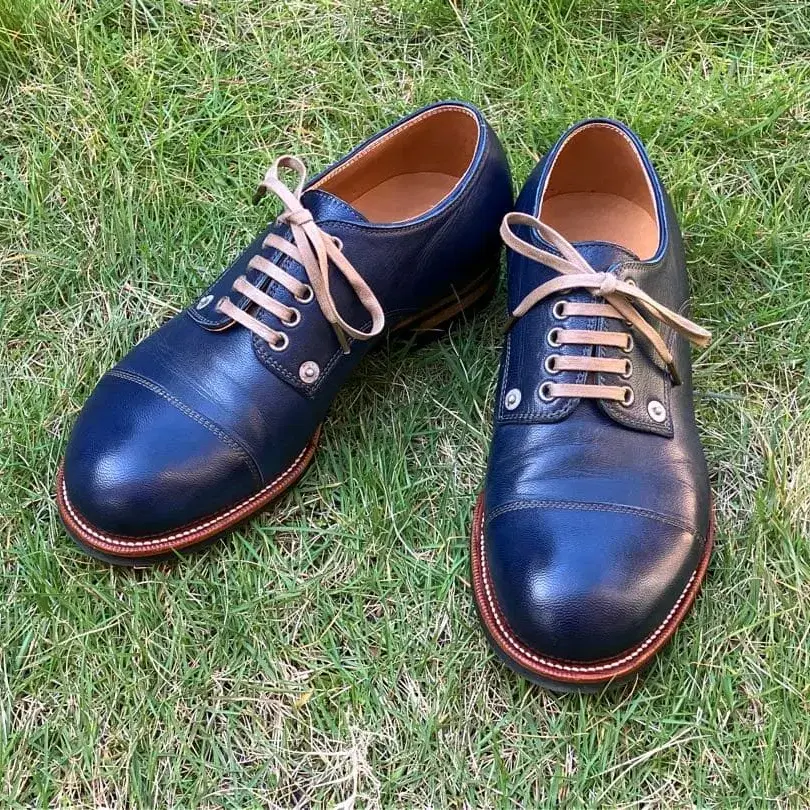 감사합니다. 부히의 가죽 신발입니다. 네이비, 인디고 색상으로 정말 멋집니다. 지인에게 구매했으며 시착 정도의 새상품급입니다. 26~26.5cm이신 분께 맞을 것 같습니다. 한정판 한 켤레이므로 빨리 구매하는 사람이 임자입니다! 잘 부탁드립니다.
