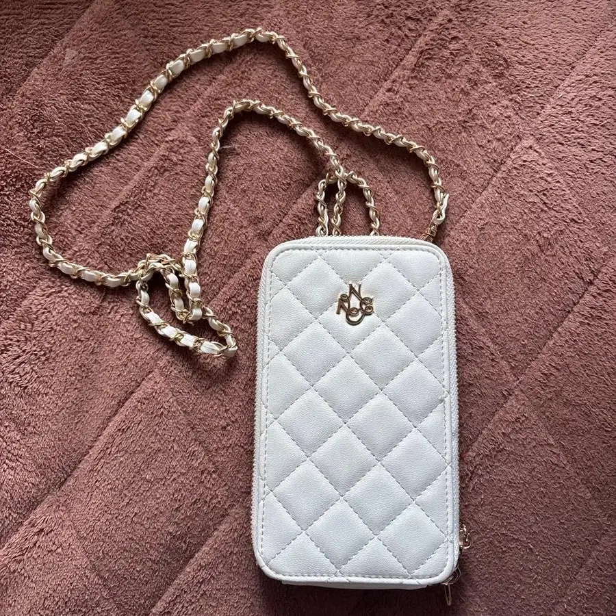 퀼팅 디자인의 화이트 스마트폰 숄더백, 카드 포켓 부착으로 편리합니다. - 색상: 화이트 - 디자인: 퀼팅 - 스트랩: 체인 스트랩 - 내부 포켓: 카드 포켓 있음 - 개폐 방법: 지퍼식 방문해 주셔서 감사합니다. 몇 번 사용했습니다.