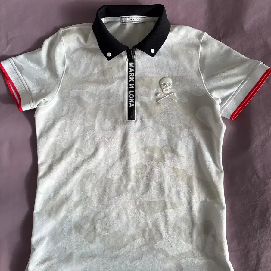 스컬과 크로스본 디자인이 특징인 화이트 피케 셔츠. - 브랜드: MARK & LONA - 색상: 화이트 - 디자인: 스컬과 크로스본 자수 - 옷깃 색상: 블랙 - 소매 색상: 빨간색 - 스타일: 피케 셔츠 - 소재: 폴리에스테르 - 지퍼: 전면 지퍼 방문해 주셔서 감사합니다. 사이즈 - S ( 38 ) 착용 횟수 적습니다.