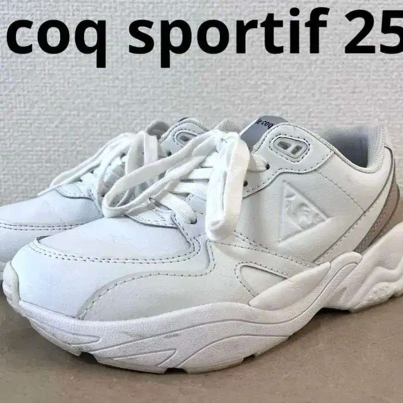 장르: 스니커즈 브랜드: le coq sportif (르꼬끄 스포르티프) 색상: 화이트 표기 사이즈: 25.0cm EUR 40.5 UK 7 US 7.5 몇 번 착용하여 신발 바닥에 약간의 얼룩이 있지만, 어퍼는 비교적 깨끗합니다. 새상품급에 가깝다고 생각하지만, 중고품임을 이해하시는 분의 구매를 부탁드립니다. #통굽 컬러 - 화이트 계열