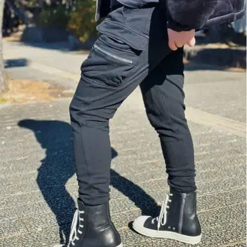 슬림핏 디자인의 블랙 워크 팬츠, 지퍼 포켓 부착으로 기능적입니다. - 색상: 블랙 - 포켓: 지퍼 포켓 부착 - 디자인: 슬림핏 디자인 - 스타일: 캐주얼 - 소재: 스트레치 소재 방문해 주셔서 감사합니다.