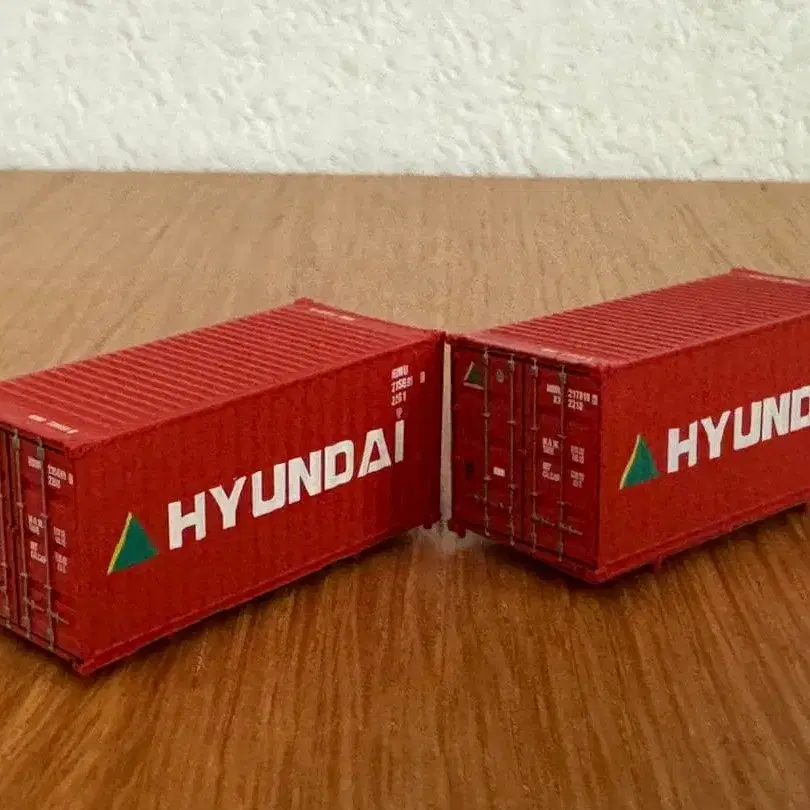 HYUNDAI 컨테이너 모형 2개 세트입니다. N 게이지 철도 모형으로 즐기실 수 있습니다.