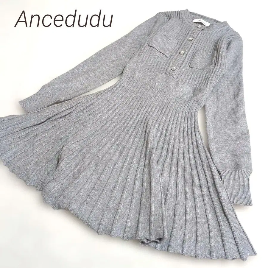 Ancedudu 빈티지 펄 버튼 무릎 기장 니트 원피스