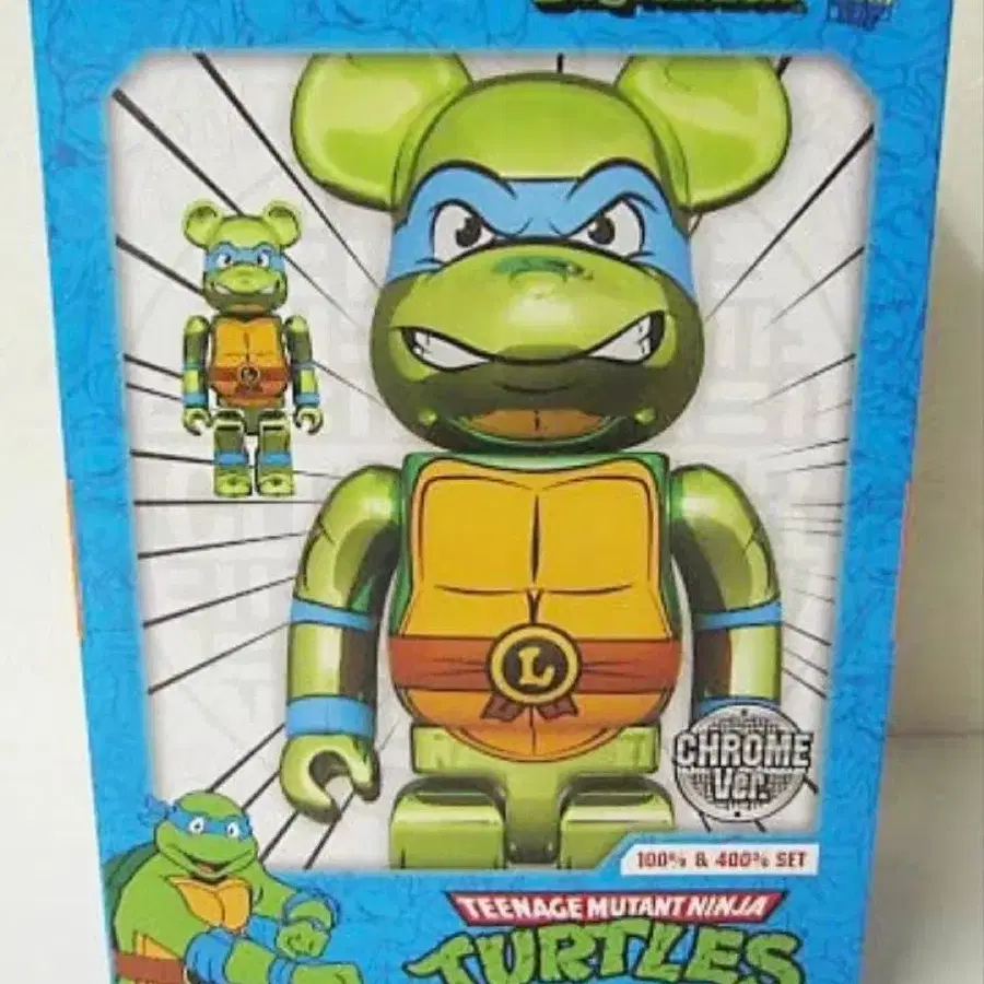 베어브릭 레오나르도 터틀즈 CHROME Ver. 400%