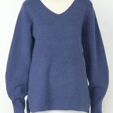 얕은 V넥 리브 니트 퍼프 슬리브 양모 혼방