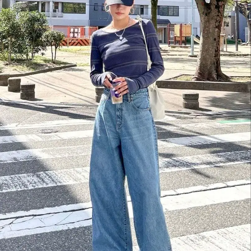 UNIQLO 와이드 스트레이트 청바지 라이트 블루