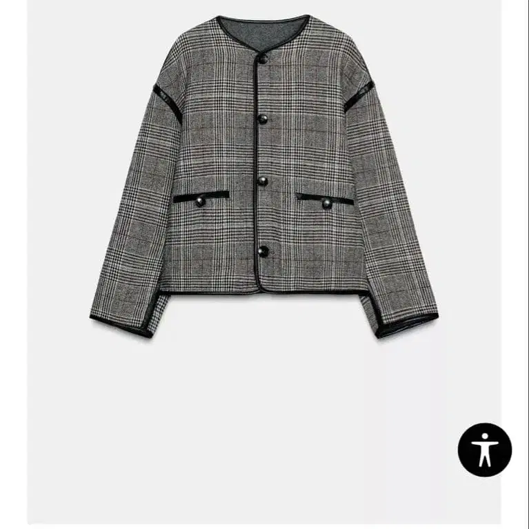 ZARA의 이번 시즌 상품입니다. 체크 무늬의 리버서블 디자인으로, 인조 가죽 소재의 노카라 자켓입니다. S 사이즈이지만 빅 사이즈 디자인입니다. - 상품명: 리버서블 바이핑 페이크 레더 자켓 - 가격: 8,590 - 디자인: 체크 무늬 - 스타일: 노카라 - 소재: 인조 가죽 - 포켓: 전면 포켓 있음 방문해 주셔서 감사합니다.