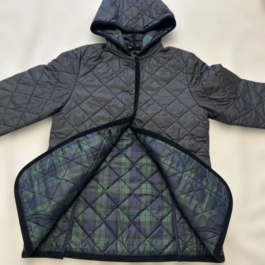 라벤햄 퀼팅 자켓 사이즈 38 겉감 블랙 코듀로이 트리밍 안감 블랙워치 프론트 버튼 여밈 뒷면 좌우 벤츠 어깨 너비 37 소매 길이 60 가슴 너비 48 기장 65 프론트 스냅 버튼이 아닌 [ LAVENHAM ] 각인 빅 사이즈 버튼이 악센트가 됩니다. 스냅 버튼보다 입고 벗기 편한 것 같습니다. 1회 착용