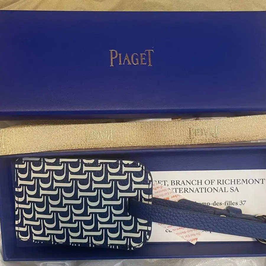 천연 가죽의 Piaget 디자인이 돋보이는 택입니다.