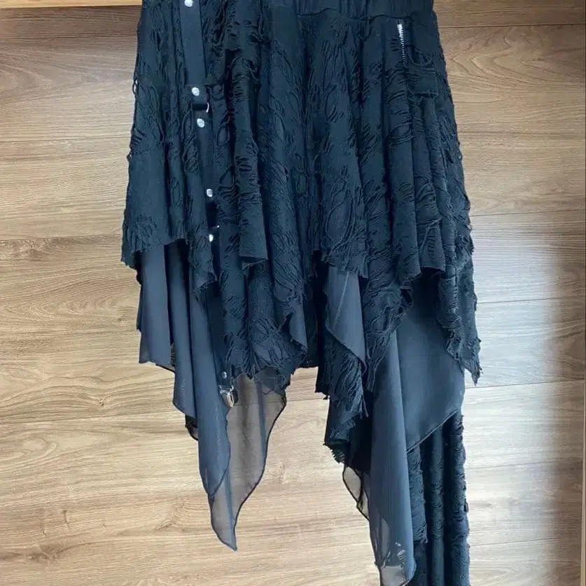 [ 새상품급 ] 비대칭 레이어드 프릴 스커트 블랙 펑크 록풍