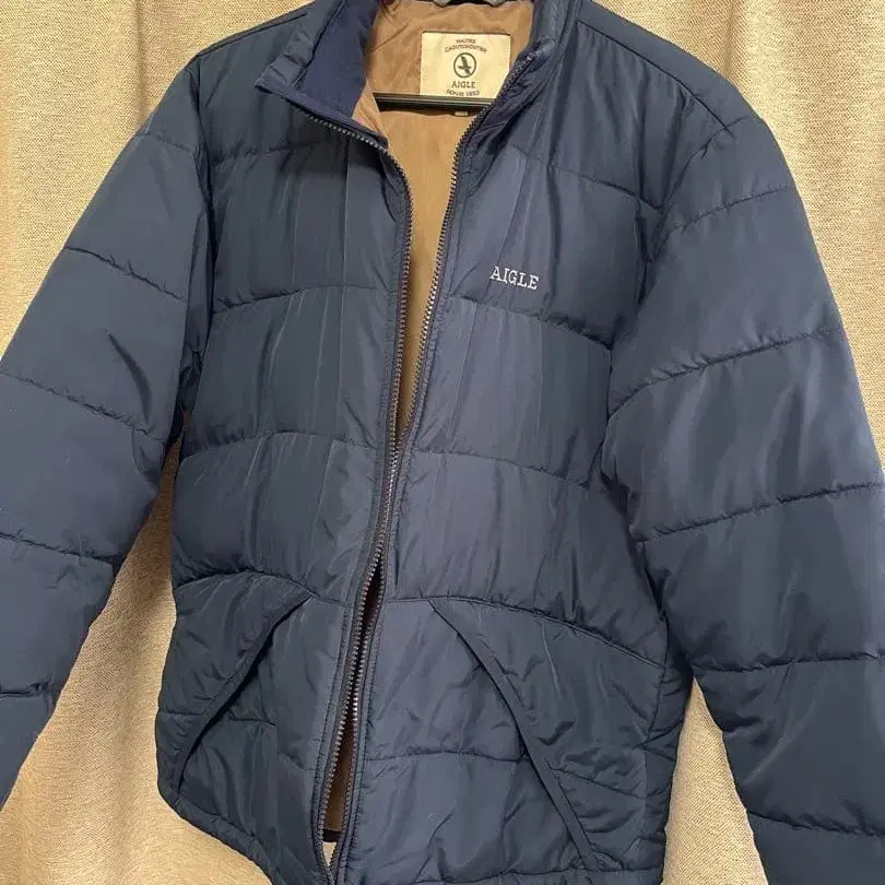 AIGLE 퀼팅 다운 자켓 블랙/파랑