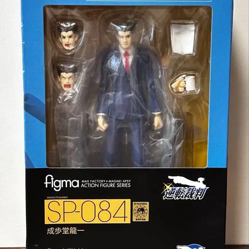 역전재판 나루호도 류이치의 figma입니다. 상자에 찍힘과 흠집이 있지만, 본체에는 문제가 없습니다.