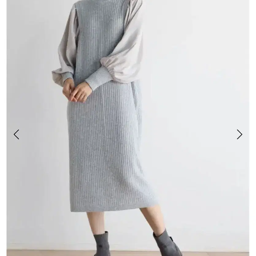 야마다야 MEDOC 볼륨 슬리브 리브 니트 원피스 그레이 19000엔