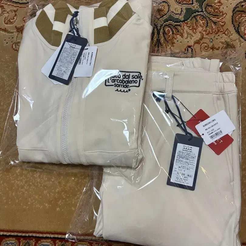 muta MARINE 무타 마린 골프 남성용 히트 퍼포마 집업 블루종 & 슬랙스 셋업 베이지 미사용 새상품 모두 색상 표기는 화이트이지만, 실제로는 베이지에 가까운 색감입니다. 사이즈는 미개봉 상태이므로 실제 측정값이 아닙니다. 아래는 사이트에 게재된 설명문을 기재합니다. [ 블루종 ] muta MARINE 무타 마린 집업 블루종 화이트 MMMK-443172 소재: 나일론 68% 폴리에스테르 22% 스판덱스 10% 사이즈: [ 5 (M) ] 기장 64 가슴 너비 55.5 어깨 너비 52 소매 길이 57 속기모 보온, 전 방향 스트레치 쾌적 소재 HEAT PERFORMA®를 채용한 집업 블루종. 원단 뒷면은 따뜻한 질감의 기모로, 기모 부분에 공기층을 확보하여 보온 효과를 발휘하는 기능성 소재. 360° 전 방향으로 신축되어 핏감 있는 쾌적한 착용감을 실현. 심플하면서도 옷깃과 밑단에 포인트 리브를 배치하여 스타일리시한 코디를 연출. 평소 착용은 물론, 골프 등 스포츠 활동 시에도 추천. [ 슬랙스 ] muta MARINE 무타 마린 히트 이펙트 슬림 슬랙스 화이트 MMJC-444112 소재: 폴리에스테르 86% 폴리우레탄 14% 사이즈: [ 5 (M) ] 허리 84, 힙 101, 밑위 26.5, 인심 74, 허벅지 너비 30.5, 밑단 폭 14 360° 전 방향으로 신축되는 스트레스 프리 소재 HEAT EFFECT(히트 이펙트)를 채용한 슬랙스. 원단 뒷면에 깊은 기모로 공기층을 확보하여 높은 보온 효과를 발휘하며, 곱고 섬세한 터치와 광택감을 지녀 부드럽고 고급스러운 질감으로 쾌적한 착용감과 적절한 탄력이 아름다운 실루엣을 유지하는 신감각 소재. 샤프한 실루엣이지만, 웨스트 사이드는 밴딩 사양으로 릴랙스한 착용감으로 스마트하면서도 고급스러운 스타일을 연출. 평소 착용은 물론, 골프 등 스포츠 활동 시에도 추천하는 캐주얼과 클린 모두에 활용 가능한 다용도 슬랙스. 가족이 받았지만 사용할 계획이 없어 판매합니다. 미개봉 상태이나, 타인에게 전달된 물품이므로 이해 부탁드립니다. 본 상품은 연말연시 한정 세일 대상에서 제외됩니다. 양해 부탁드립니다.