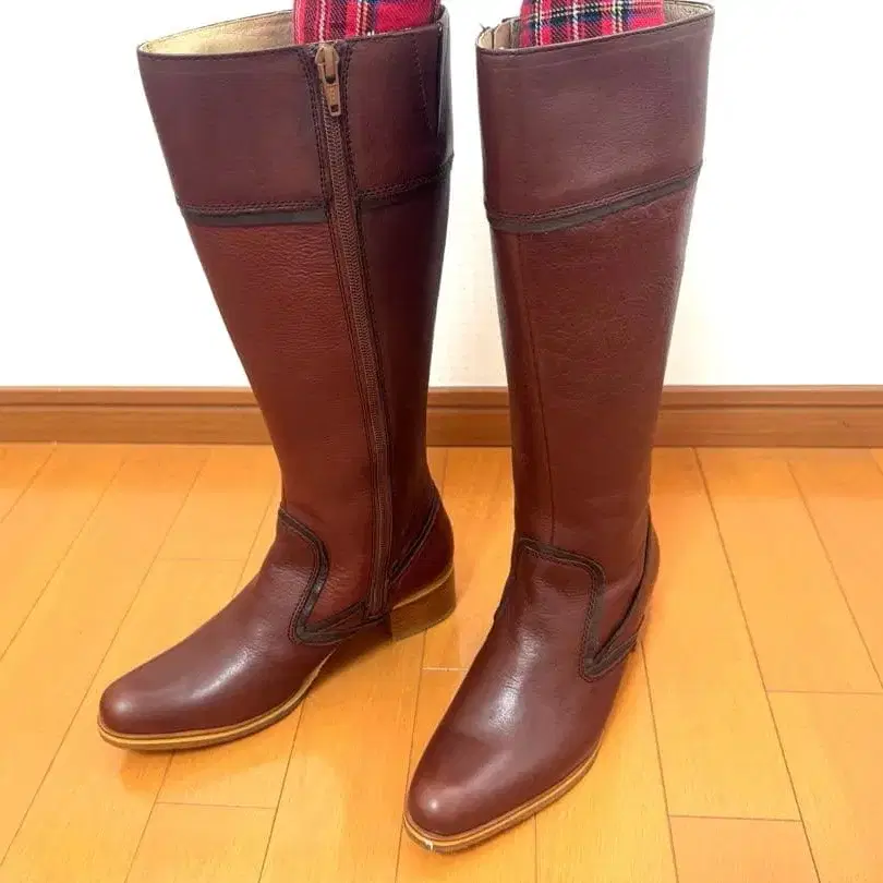 키다리 아저씨 브라운 가죽 롱 부츠 23.5cm