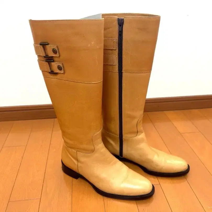 베이지 색상의 백 지퍼 롱 부츠, 버클 2개 디자인. - 색상: 베이지 - 디자인: 백 지퍼 - 장식: 버클 2개 - 밑창 소재: 고무 밑창 - 굽 높이: 약 3cm 방문해 주셔서 감사합니다.
