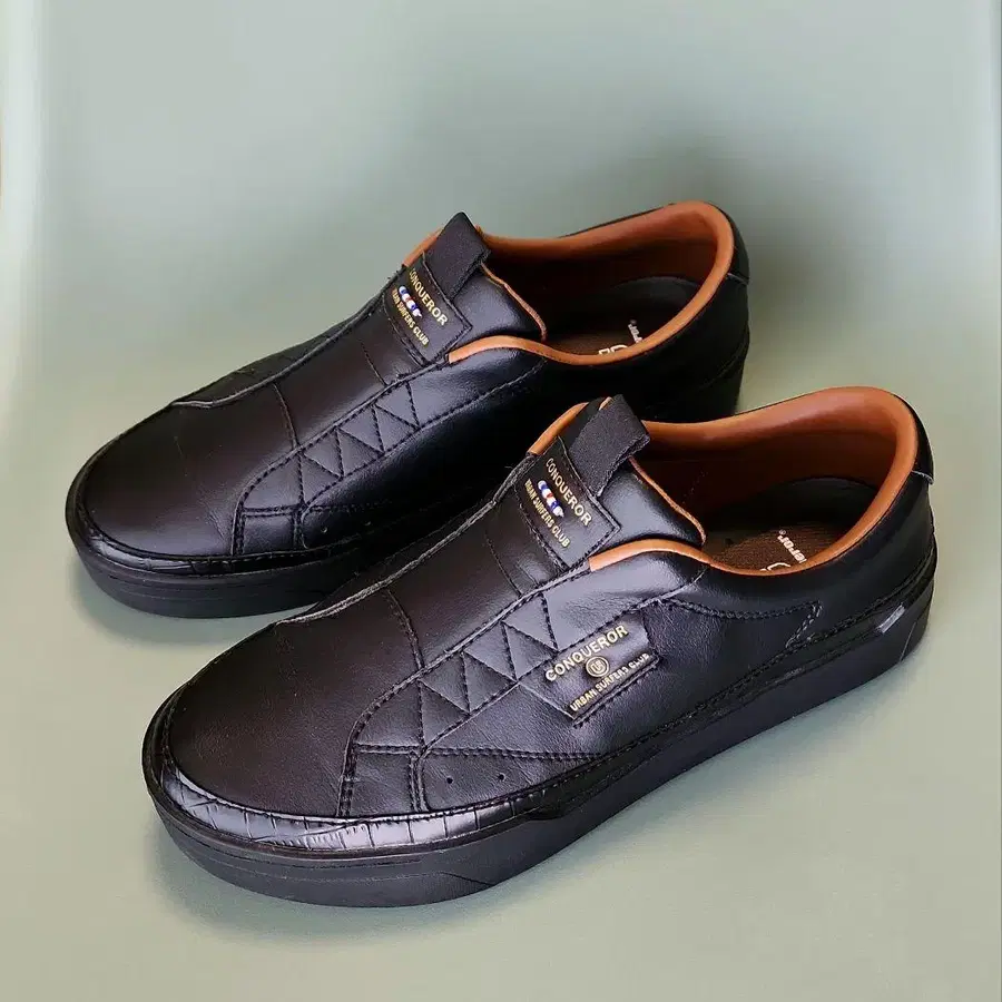 ● 슬립온 타입으로 신기 편한 콘칼라의 가죽 스니커즈 BASEL. BLACK 27.0cm 입니다. 4~5일 정도 신고 외출했지만, 울퉁불퉁한 아스팔트나 언덕이 많은 시골 환경에는 맞지 않는 것 같아 판매합니다. 도시 지역 등 평지에 거주하시며 신고 벗기 편한 검은색 스니커즈를 찾으시는 분께 추천합니다.