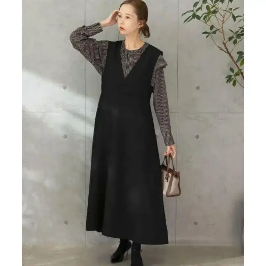 앞뒤 2WAY로 착용 가능한 아름다운 실루엣의 점퍼 원피스입니다. 울 느낌의 소재를 사용하여 가을/겨울 느낌으로 마무리했습니다. 가슴 밑에 절개가 들어가 있어 스타일업 효과도 기대할 수 있습니다.