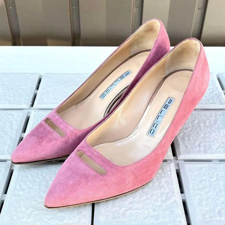 PELLICO 펠리코 스웨이드 펌프스입니다. ANIMA 아넬리 스웨이드 펌프스 6.5cm 사이즈 36.5 일본 사이즈 23.5cm 정도 색상 핑크 스웨이드 힐 6~6.5cm 부속품 없음 짧은 시간 사용으로 인한 약간의 스크래치와 주름이 있습니다. 눈에 띄는 데미지 없이 깨끗한 상태입니다. 부드러운 가죽 소재로 발에 편안합니다. 색상 - 핑크 계열 힐 높이 - 5.1~7cm 발가락 - 스틸레토 밑창 힐 모양 - 핀힐 얼룩, 찢김, 냄새 등 - 없음 사이즈 - 23.5cm