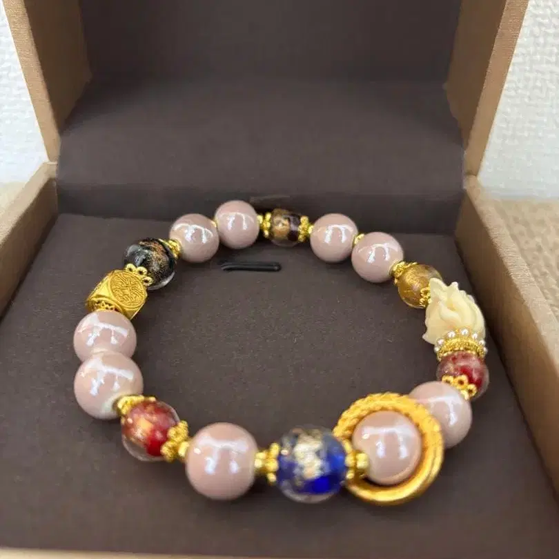 골드 컬러 비즈가 조화로운 팔찌. - 색상: 핑크 계열 - 소재: 금속 - 디자인: 비즈 팔찌 - 특징: 골드 컬러 악센트, 장식적인 비즈 - 사이즈: 손목에 맞는 사이즈 방문해 주셔서 감사합니다.