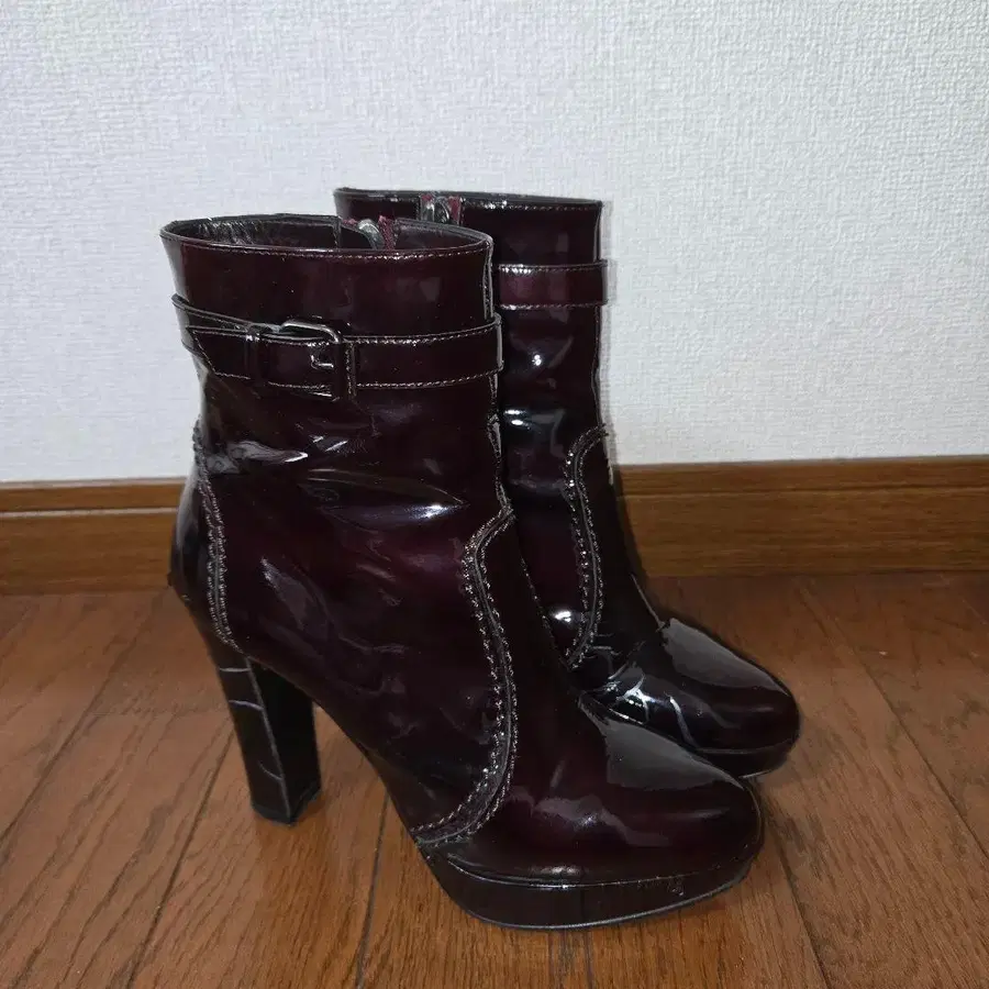 긴자 카네마츠 에나멜 숏부츠 보르도 몇 번 착용했습니다. 5번째 사진 왼발 안쪽에 흠집이 있습니다. 양해 부탁드립니다. 즉시 구매 ok