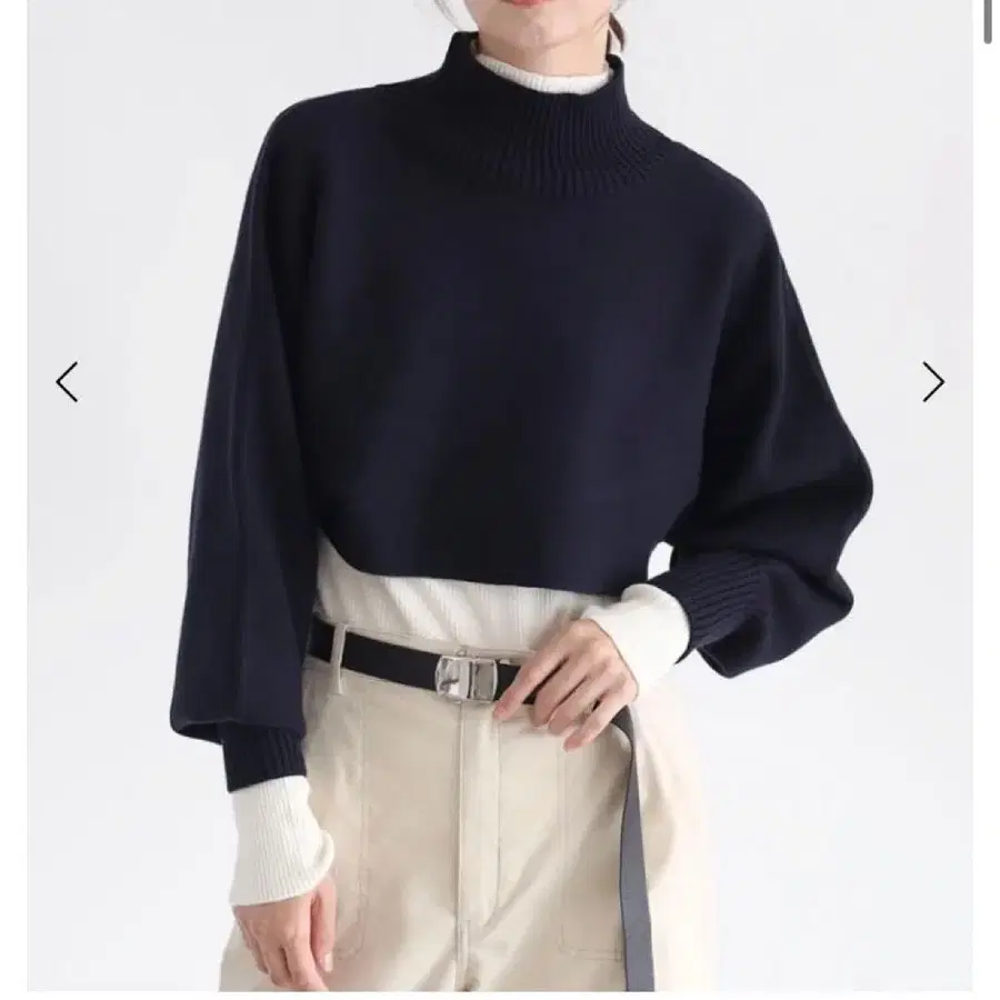 스탠다드한 화이트 니트에 네이비 니트 셋업입니다.