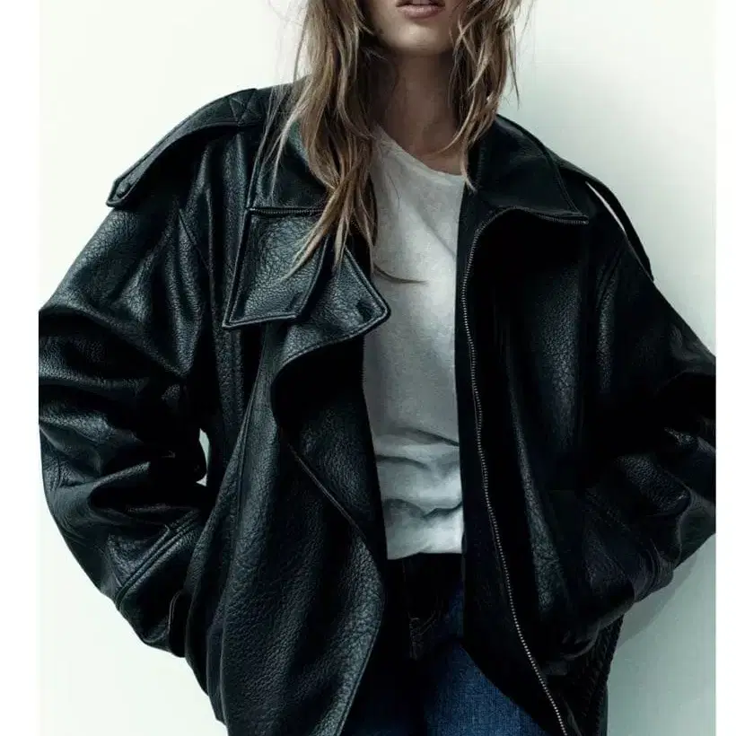 ZARA 대비 페이크 가죽 자켓