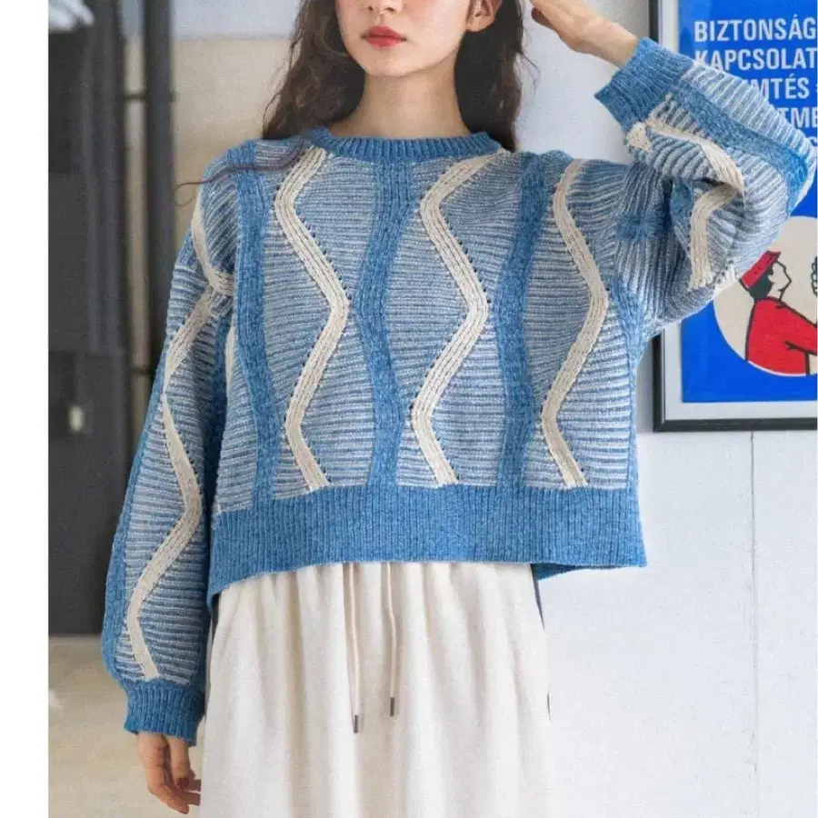 niko and - 몰 자카드 니트 풀오버 스카이블루 M 사이즈